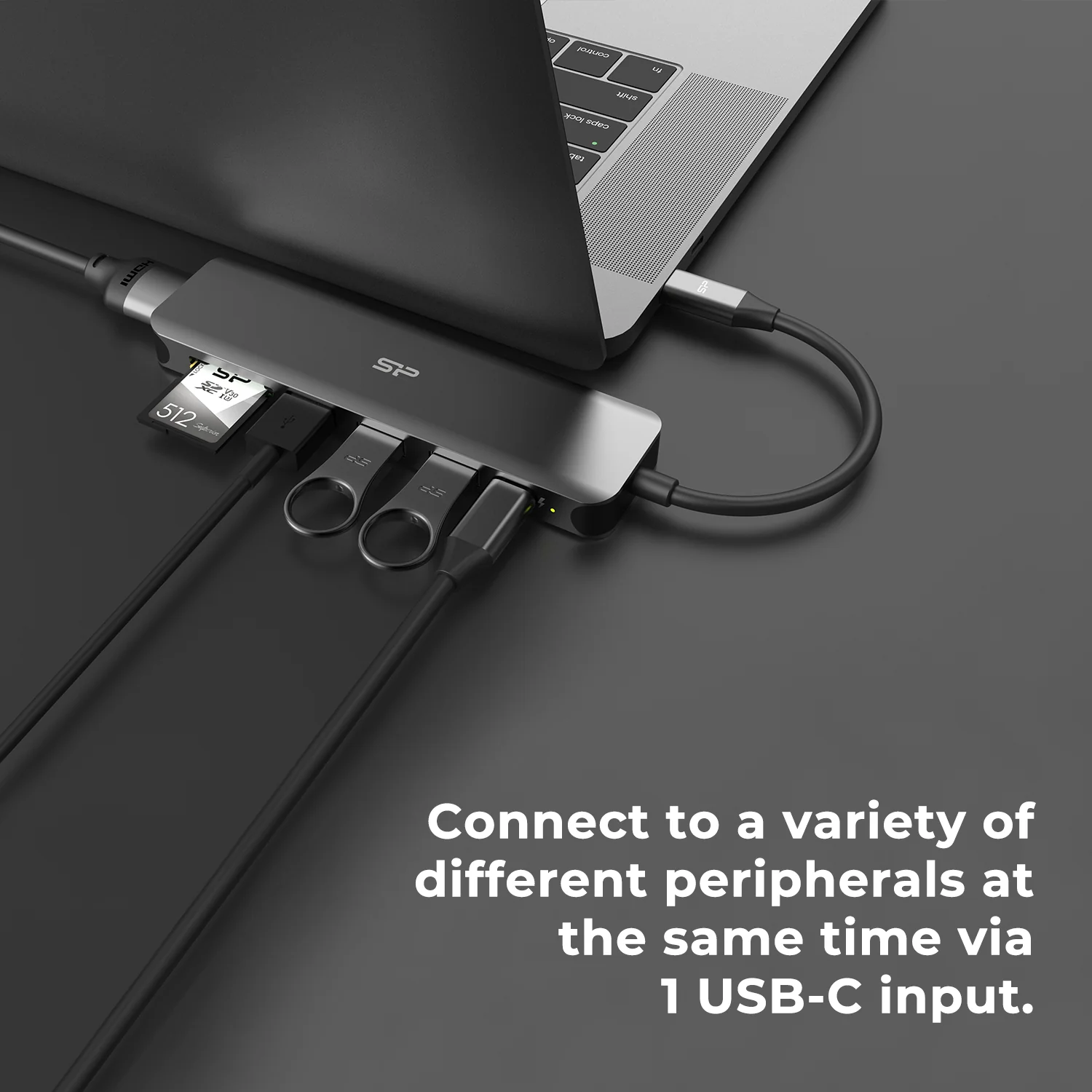 Silicon Power SU20 7-in-1 Docking Station with HDMI, USB Type-A, USB-C PD, SD, and microSD ports